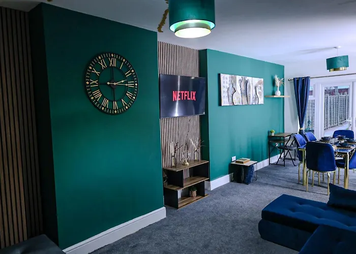 Pousada Sleeps17 Bliss 7-Bedroom Luxury Escape Birmingham está localizada a 25 minutos a pé de Robin Hood Golf Club, dando acesso a vários pontos turísticos próximos.